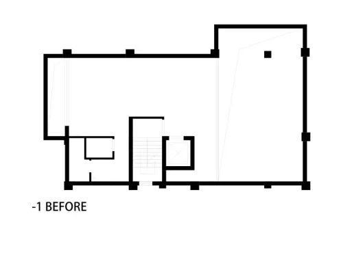 改造后: 我们设计师通过空间的规划与巧妙布局,在自然与人工之间寻找平衡。在进门玄关处设计隐藏式梯形鞋帽柜,并以两扇黑白分明的双色门强化室内与室外的界限,将玄关与室内分隔。在地下室大刀阔斧地拆除部分墙体改为宽阔的落地窗。为房子量身定制排水方案,增设隔潮墙,让地下空间免受阴暗潮湿的困扰。设计钢板与实木混合的旋转楼梯。新增雾霾蓝百叶窗,在地下室模拟自然光的装置艺术。全屋的软装陈列不会过度刻意,传递出祥和悠闲的生活方式。