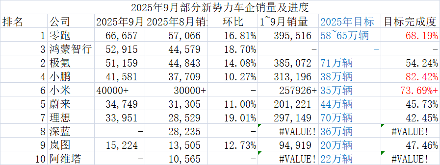 造车新势力9月成绩单:零跑汽车首破六万大关