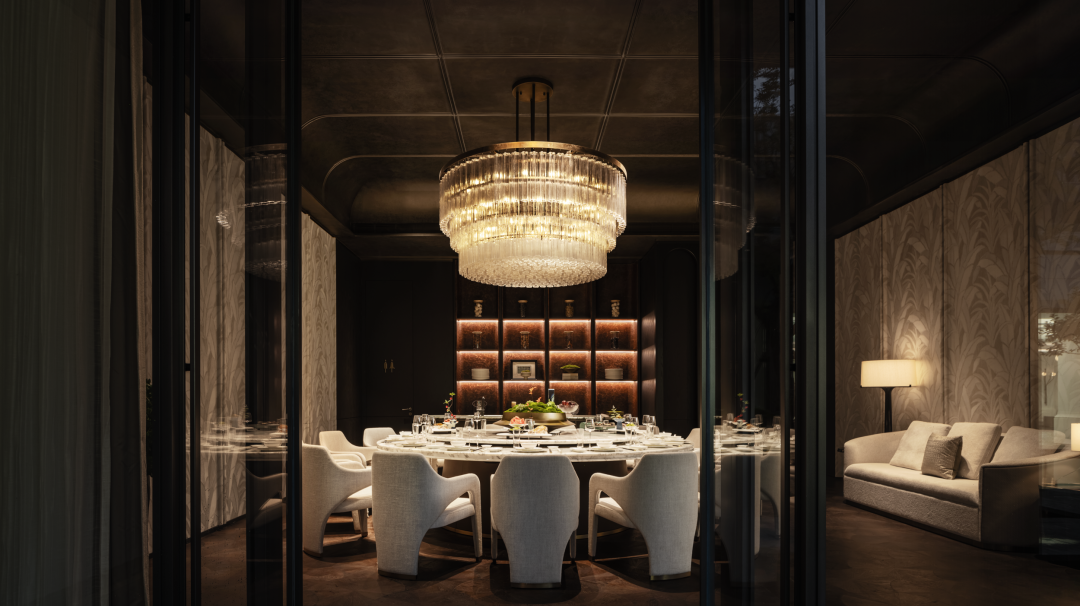 在会所营造上,从温州五马街立面门头提取的独特造型与非遗漆器、瓯绣艺术的灵感再现,处处彰显着空间的雅奢光芒。