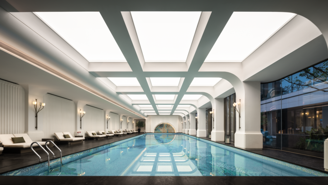 瓯塑浮雕、瓯窑青瓷、瓯绣织艺等设计美感,融入温州在地文化的同时,又不失自在、自洽的松弛写意。洽谈会客厅、下沉式庭院、红酒雪茄吧、私宴厅、高尔夫室、健身室与恒温泳池等空间的设计,更是将高奢生活实力落地。未来,VIP商务会谈、文化沙龙、闲庭雅座、挥杆世界……都将在这里流动上演。