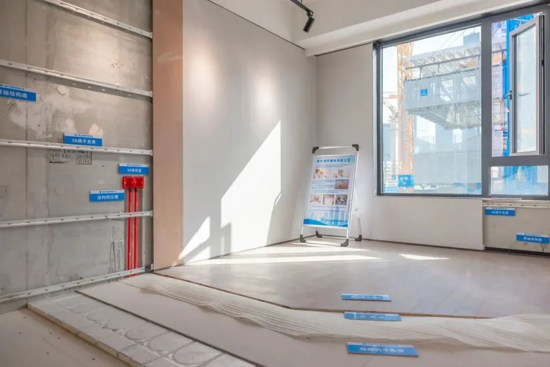 中建壹品·汉韵公馆以"壹品好房"科技体系为内核,精装标准对标四万+/㎡豪宅配置——全屋搭载东芝中央空调、霍尼韦尔新风、威能地暖"顶配三件套",以全屋智能系统为中枢,集成全房智能开关、温控三合一面板及全屋WiFi增强模块,实现声/光/空气/安防一键智控。