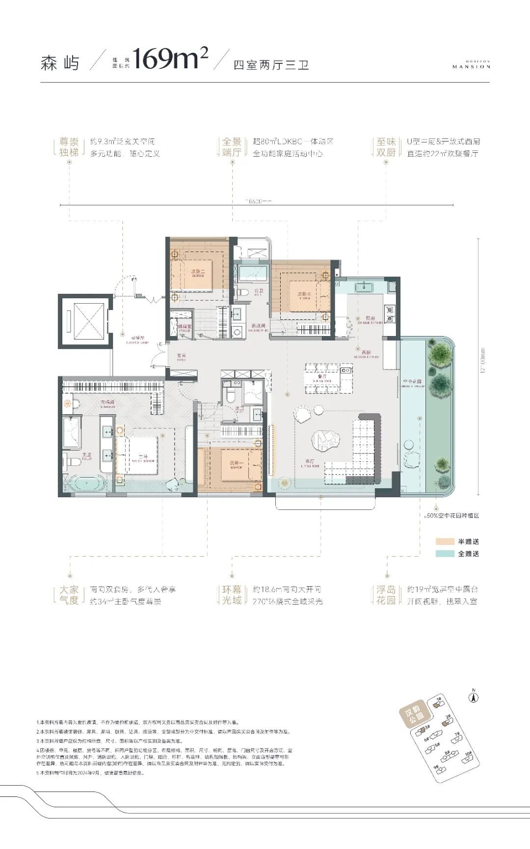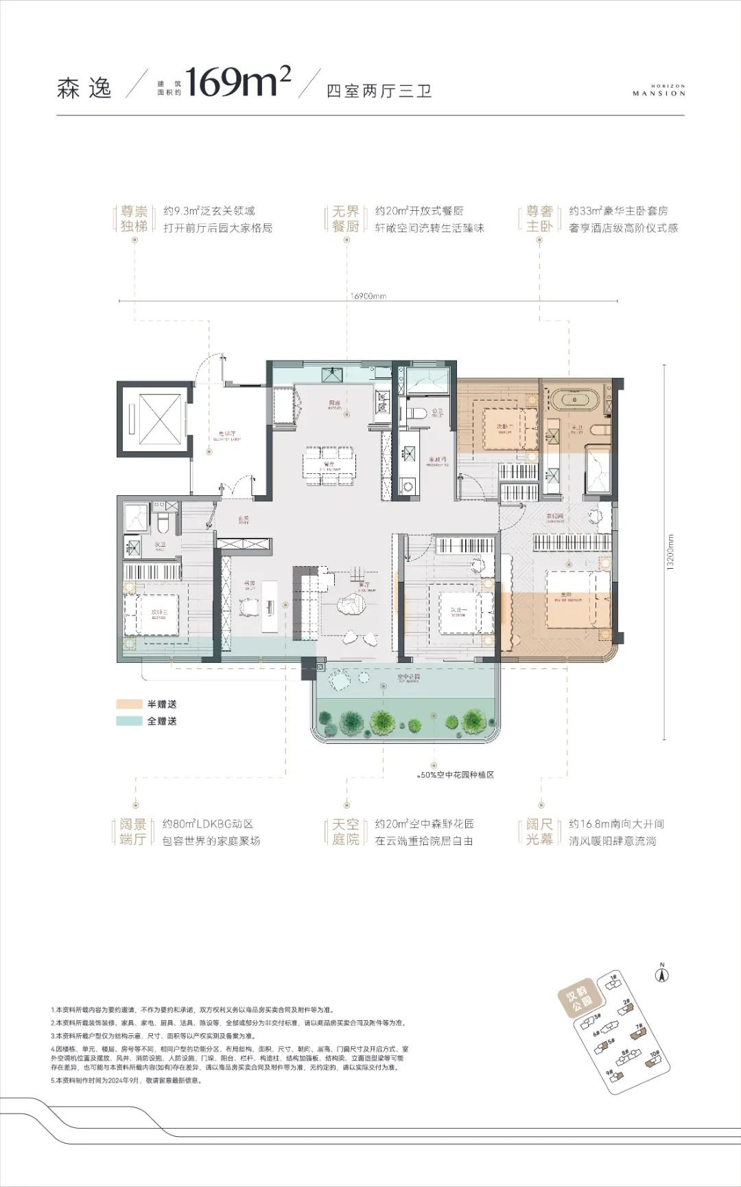 建面约 169㎡四室两厅三卫户型,以进阶尺度诠释高阶范本。超80㎡LDKBG一体动区,宴客欢聚更显从容。南向双套房设计,多代同堂亦享私密舒逸。约 19㎡宽屏空中露台花园,搭配270°环幕采光,将自然绿意与开阔视野揽纳入室,重塑理想人居的空间想象。