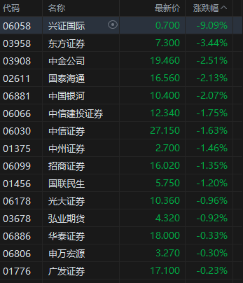 中资券商股持续调整,兴证国际跌超9%。银河证券认为,国家“稳增长、稳股市”、“提振资本市场”的政策目标仍将持续定调板块未来走向。流动性适度宽松环境延续、资本市场环境持续优化、投资者信心重塑等多方面因素共同推动券商板块景气度上行,中长期资金扩容预期进一步增强基本面改善预期。