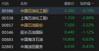 石油股走低,中石化跌超4%。中国石化(600028)公告,按中国企业会计准则,预计公司2025年上半年实现归属于母公司股东的净利润为人民币201亿元至人民币216亿元,与上年同期相比,将下降39.5%至43.7%。预计公司2025年上半年实现归属于母公司股东的扣除非经常性损益后的净利润为人民币200亿元至人民币215亿元,与上年同期相比,将下降39.6%至43.8%。