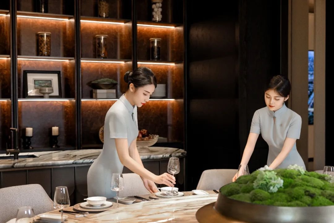 在会所营造上,从温州五马街立面门头提取的独特造型与非遗漆器、瓯绣艺术的灵感再现,处处彰显着空间的雅奢光芒。