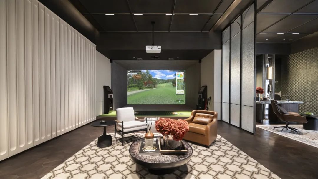 瓯塑浮雕、瓯窑青瓷、瓯绣织艺等设计美感,融入温州在地文化的同时,又不失自在、自洽的松弛写意。洽谈会客厅、下沉式庭院、红酒雪茄吧、私宴厅、高尔夫室、健身室与恒温泳池等空间的设计,更是将高奢生活实力落地。未来,VIP商务会谈、文化沙龙、闲庭雅座、挥杆世界……都将在这里流动上演。