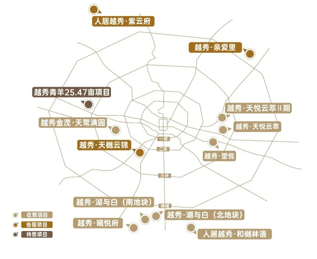 越秀地产成都项目分布示意