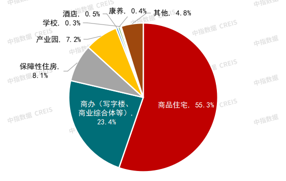 商品住宅占比超5成。从代建项目业态来看,2024年典型代建企业新签约规划建筑面积中,商品住宅、商办和保障性住房占比86.8%,此三类业态也是房地产开发的主要业态,亦成为代建的主要业态类型。其中,商品住宅占比55.3%,占比最高,商办类占比23.4%,保障性住房占比8.1%。值得注意的是,产业园类代建占比达7.2%。产业园代建当前主要分为三种类型,即纯代建、产业定位+代建、产业定位+代建+引入资源,当前前两类代建占比最高。产业园代建通常较为考验代建企业能力,对代建企业相关经营有一定要求,从企业来看,华夏幸福、旭辉建管、远洋建管等企业均有涉足。