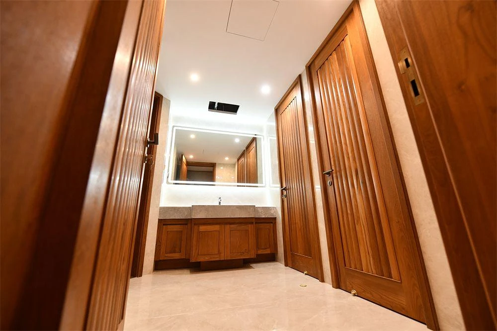 使用缅甸柚木制作的浴室柜能够展现出高级感。缅甸柚木的独特纹理和质感使得制作出来的浴室柜都具有一种高贵、典雅的氛围。无论是缅甸柚木的浴室柜、洗手台还是镜子,都能够给人一种独特的享受和尊贵感。这些定制浴室柜不仅能够提升整个卫浴空间的品味,还能够展现出主人的品味和身份。