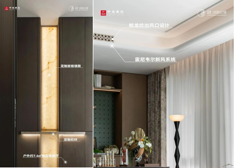中建壹品·汉韵公馆以"壹品好房"科技体系为内核,精装标准对标四万+/㎡豪宅配置——全屋搭载东芝中央空调、霍尼韦尔新风、威能地暖"顶配三件套",以全屋智能系统为中枢,集成全房智能开关、温控三合一面板及全屋WiFi增强模块,实现声/光/空气/安防一键智控。