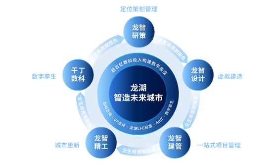 龙湖龙智造聚合五大业务“飞轮”:龙智研策、龙智设计、龙智建管、龙智精工、千丁数科,以完整的战略生态,为客户提供 定位策划、虚拟建造、开发管理、城市更新、数字孪生 等全周期产品服务,通过整合多航道资源,为客户赢得超额回报,并在此过程中实现自身高质量的发展。